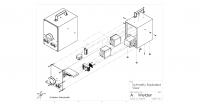 The case is made of 1/2 in [12.7mm] thick MDF. My Solidworks mockup indicated that I'd have enough room to fit all the other components, though fitting my hands inside for the wiring stage might be a little bit of a struggle. I drilled holes as necessary to support the countersunk screws which hold various power components. Because the case is meant to isolate and protect the power components from the world, the transformers are all grounded to ensure that no voltage could accidentally escape to the outside using the bolts.
